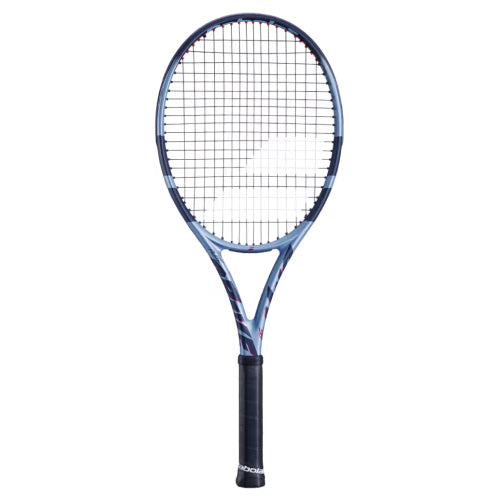 The Pure Drive tennis racquet boasts an all-new design to reflect this stunning power: it is done in modern metallic blue highlighted by flamboyant red trim in the middle to symbolize the power that erupts between your hands.